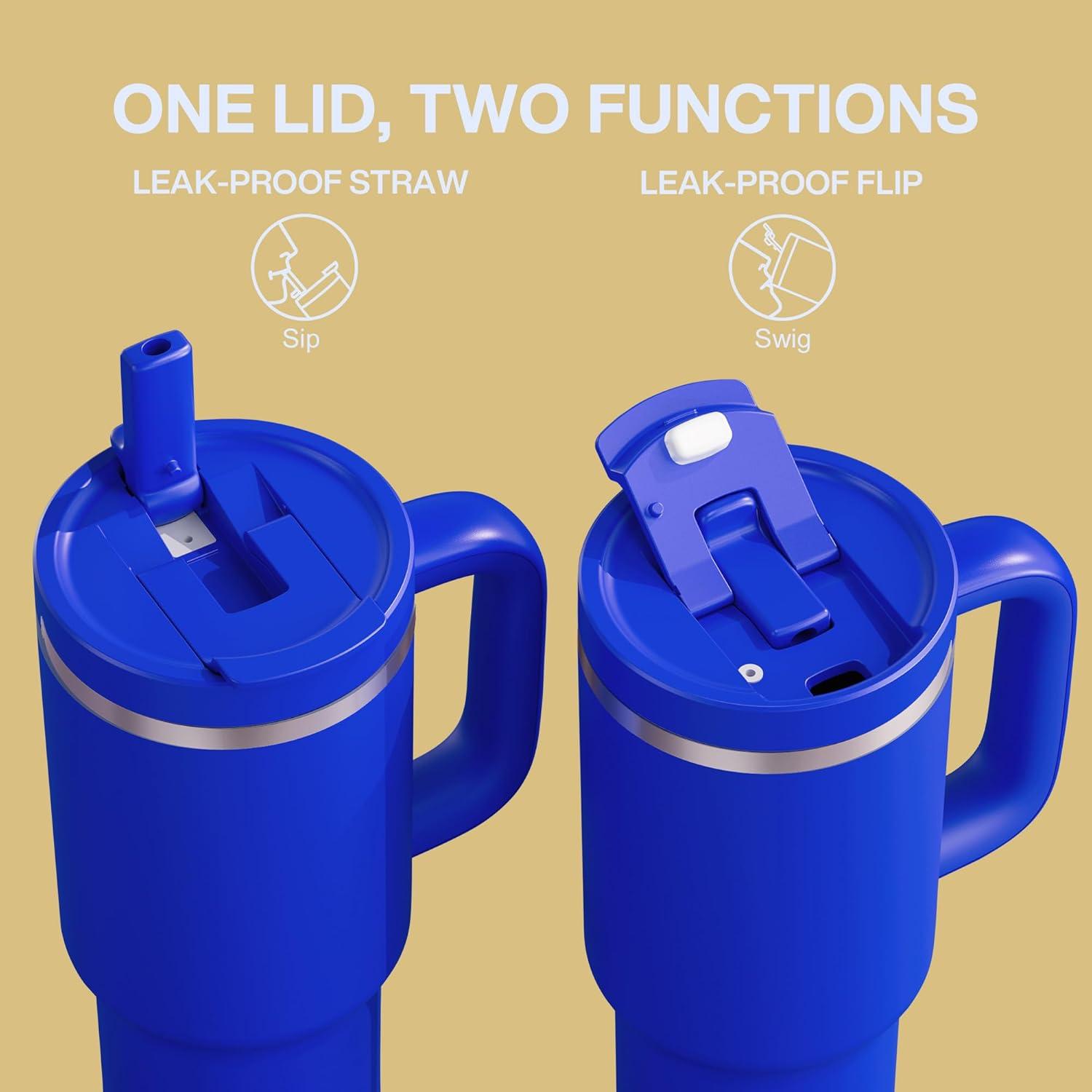 32 oz Tumbler with Handle and Straw: Stainless Steel Insulated Tumbler Keeps Cold for 24 Hours, Leakproof Travel Cup Fits in Cup Holder and BPA-Free,Acid Green(Royal Blue)