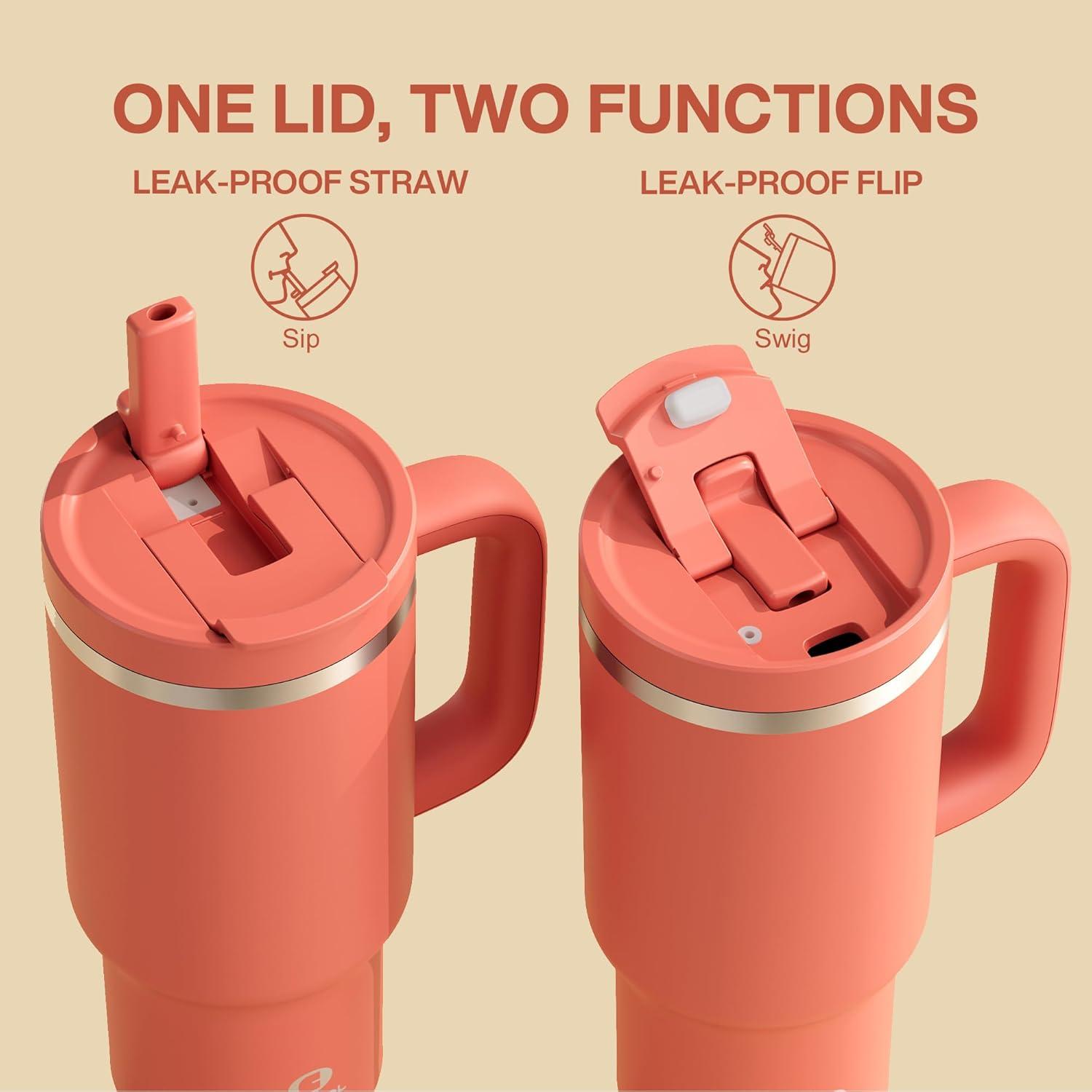 Leakproof Convenience: The secure, flip-top lid ensures a spill-free experience. Flip it open for easy sipping on the go, and snap it shut to keep your drink safely contained—perfect for your active lifestyle