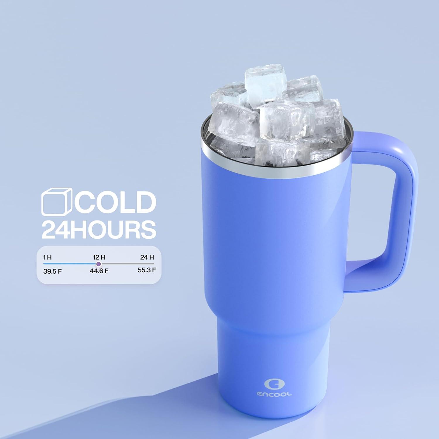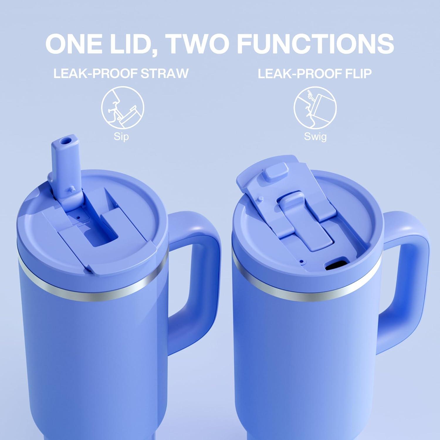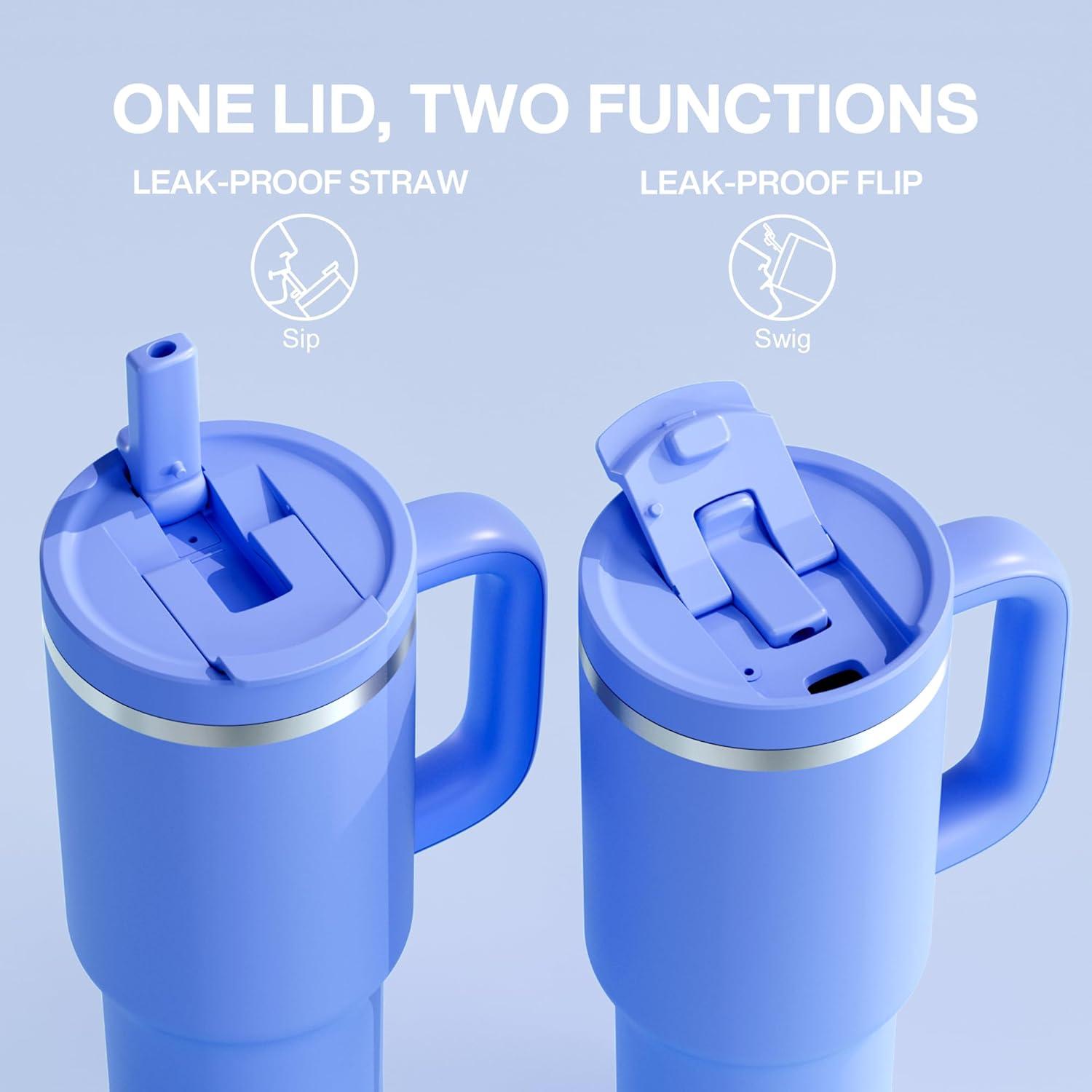 image40 oz Tumbler with Handle and Straw Stainless Steel Insulated Tumbler Keeps Cold for 24 Hours Leakproof Travel Cup Fits in Cup Holder and BPAFree AvenueCornflower Blue