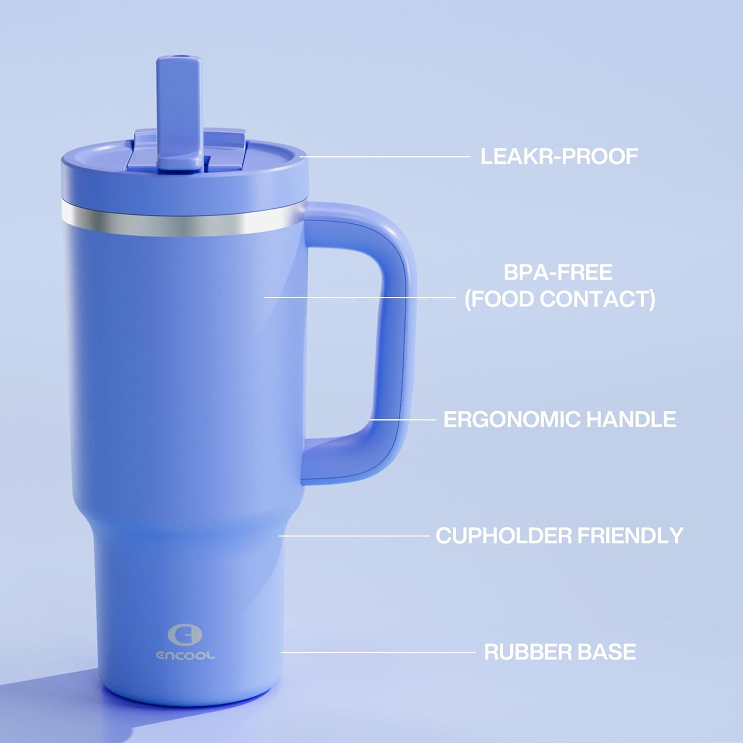 Be the first to review “40 oz Tumbler with Handle and Straw: Stainless Steel Insulated Tumbler Keeps Cold for 24 Hours, Leakproof Travel Cup Fits in Cup Holder and BPA-Free, Avenue(Cornflower Blue)”