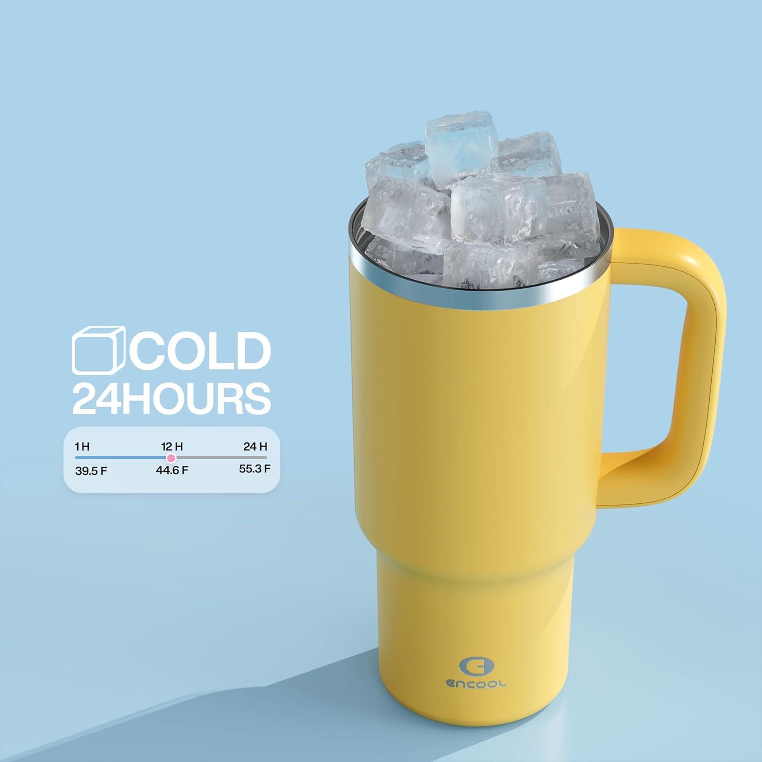 image40 oz Tumbler with Handle and Straw Stainless Steel Insulated Tumbler Keeps Cold for 24 Hours Leakproof Travel Cup Fits in Cup Holder and BPAFree AvenueElfin Yellow