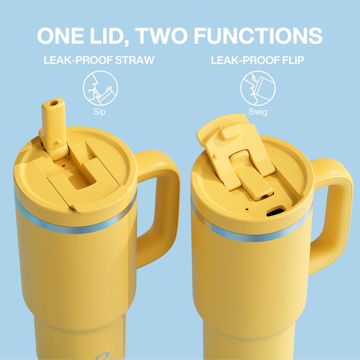 40 oz Tumbler with Handle and Straw: Stainless Steel Insulated Tumbler Keeps Cold for 24 Hours, Leakproof Travel Cup Fits in Cup Holder and BPA-Free, Avenue(Elfin Yellow)