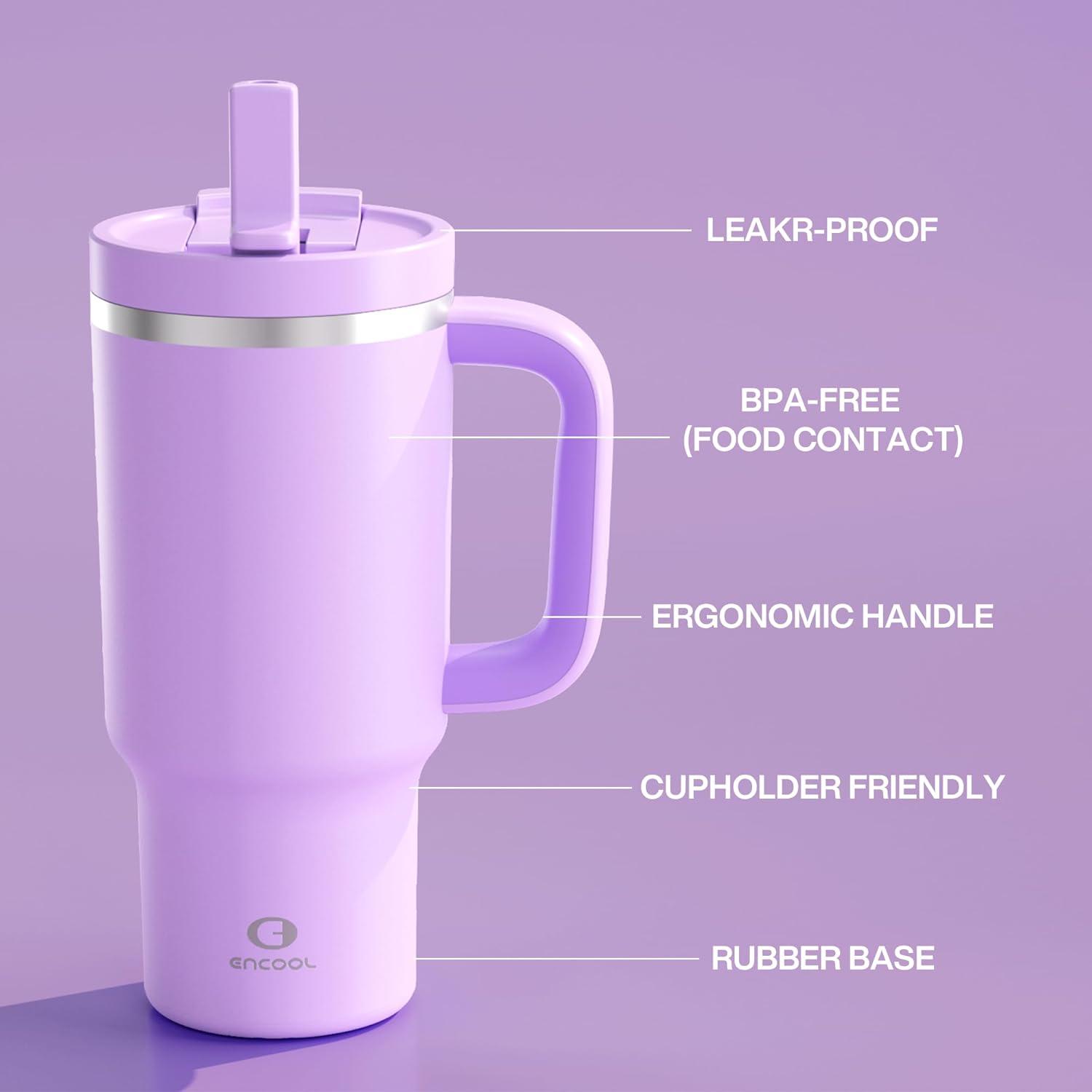 image40 oz Tumbler with Handle and Straw Stainless Steel Insulated Tumbler Keeps Cold for 24 Hours Leakproof Travel Cup Fits in Cup Holder and BPAFree AvenueLavender