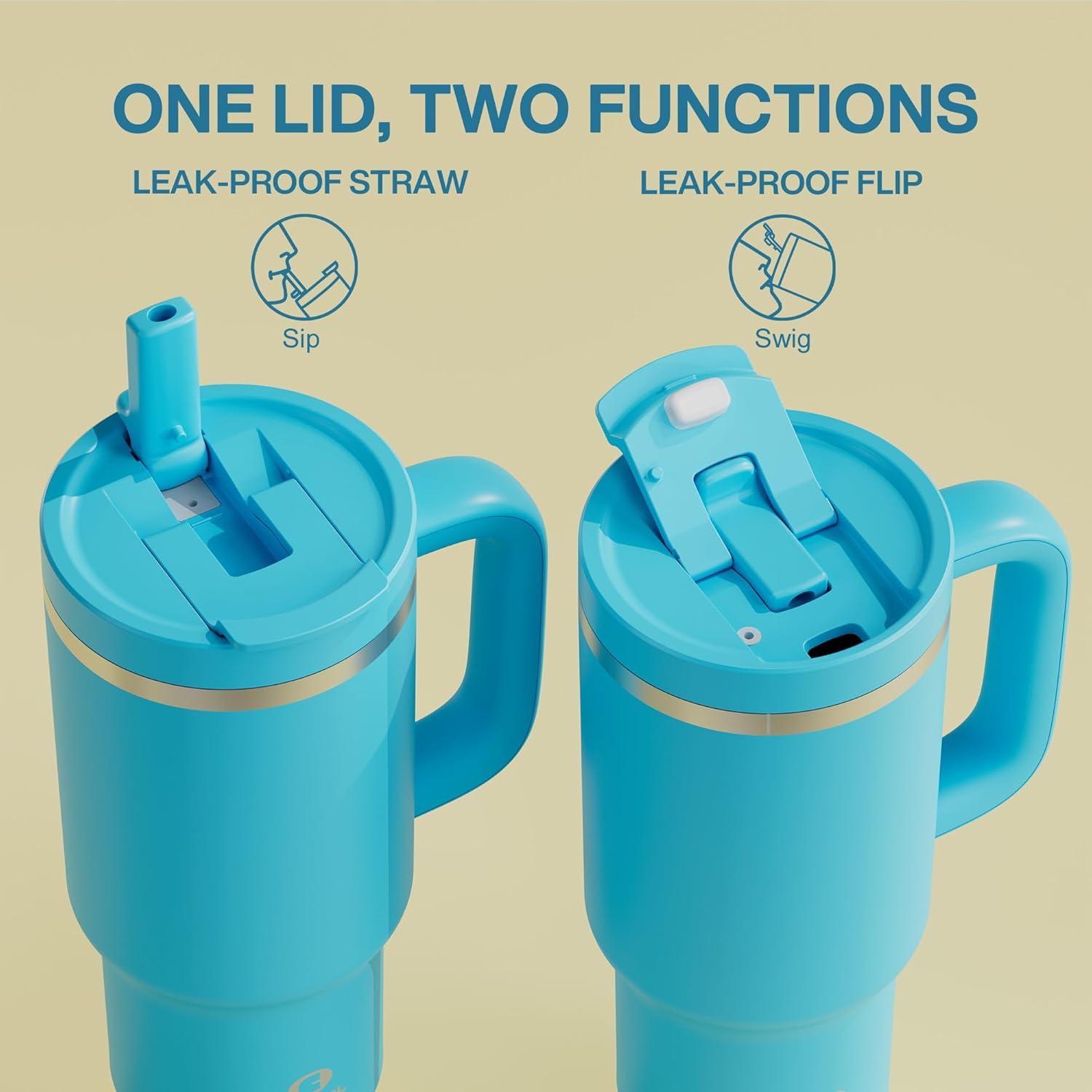 40 oz Tumbler with Handle and Straw: Stainless Steel Insulated Tumbler Keeps Cold for 24 Hours, Leakproof Travel Cup Fits in Cup Holder and BPA-Free, Evening Glow(Beaucoup Blue)