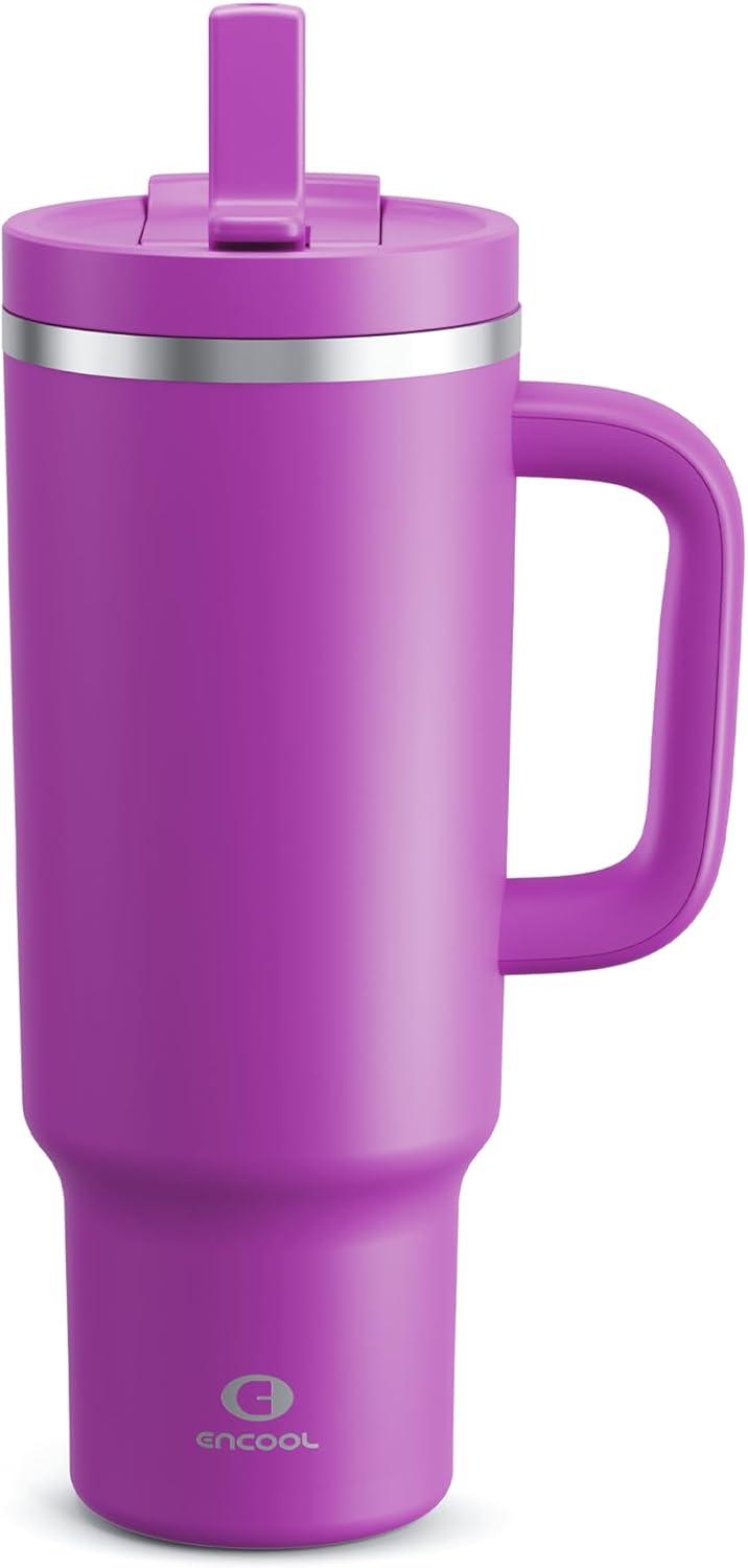 image40 oz Tumbler with Handle and Straw Stainless Steel Insulated Tumbler Keeps Cold for 24 Hours Leakproof Travel Cup Fits in Cup Holder and BPAFree Evening GlowBright Magenta