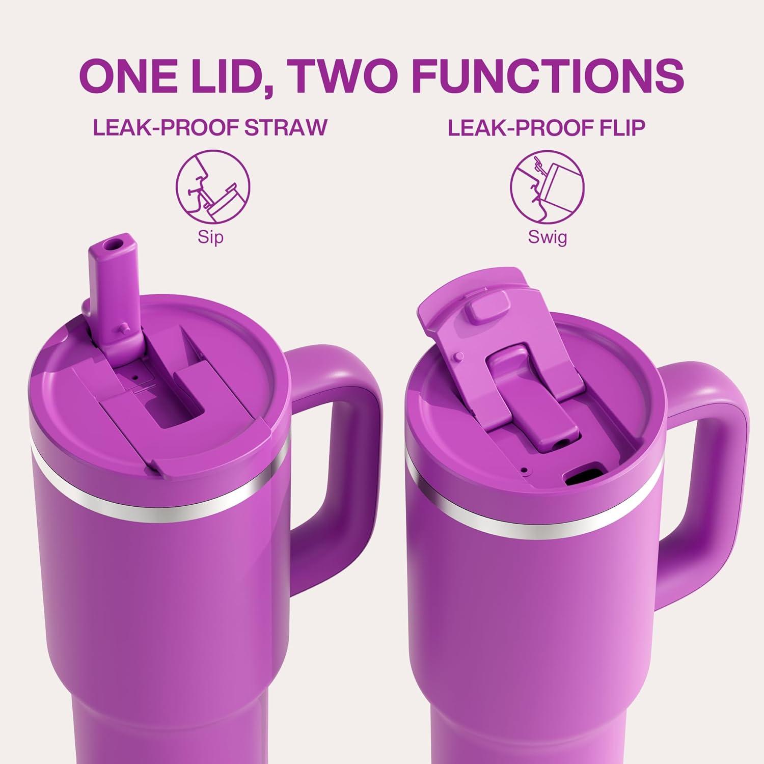 40 oz Tumbler with Handle and Straw: Stainless Steel Insulated Tumbler Keeps Cold for 24 Hours, Leakproof Travel Cup Fits in Cup Holder and BPA-Free, Evening Glow(Bright Magenta)