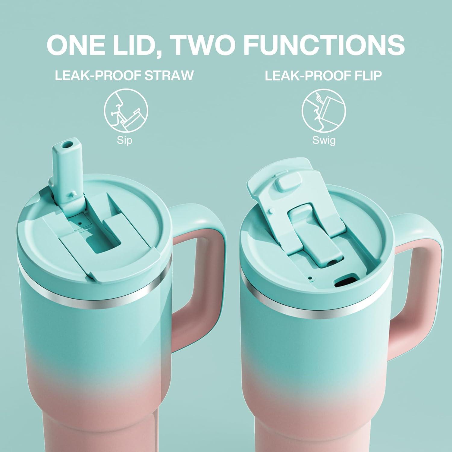40 oz Tumbler with Handle and Straw: Stainless Steel Insulated Tumbler Keeps Cold for 24 Hours, Leakproof Travel Cup Fits in Cup Holder and BPA-Free, Evening Glow(Cotton Candy)