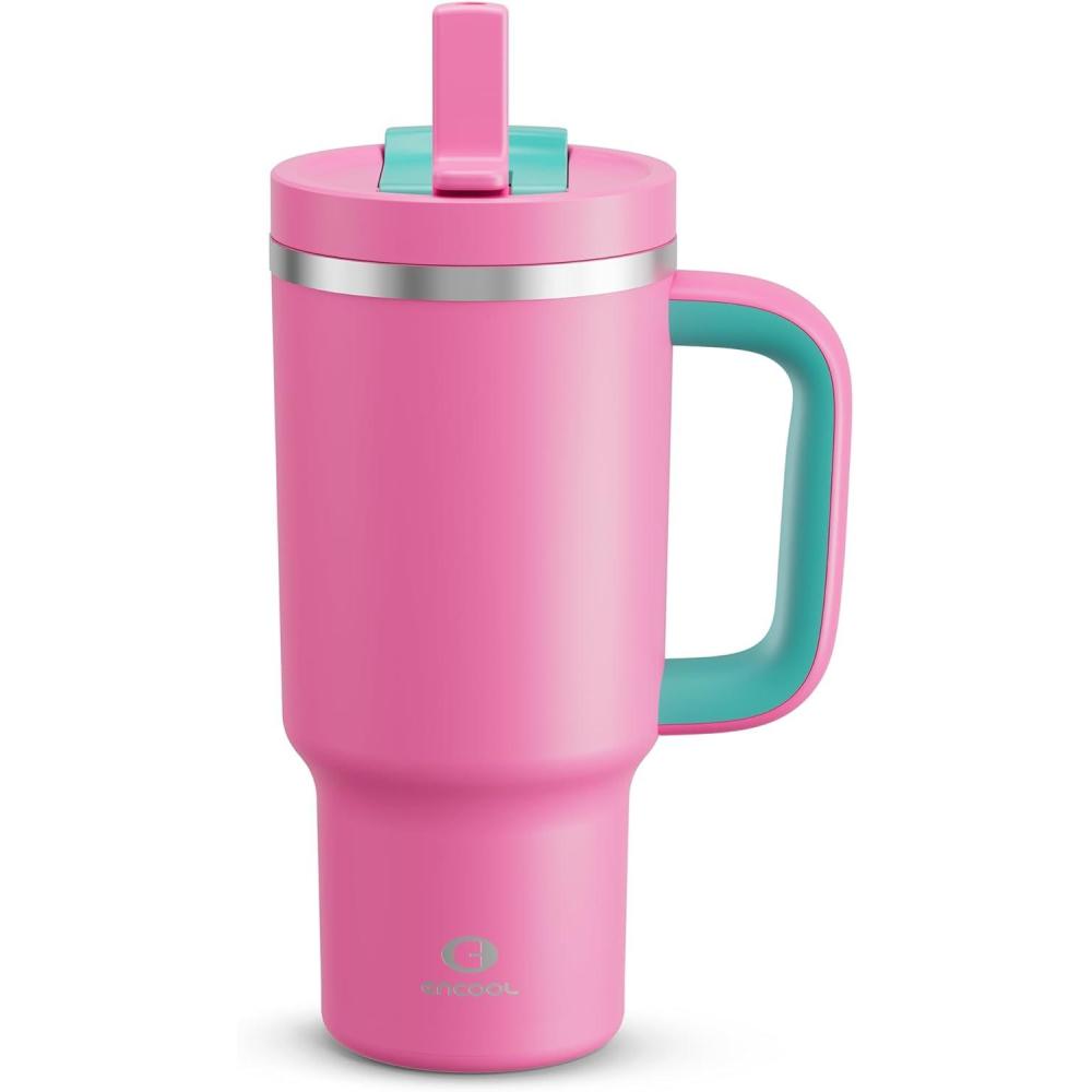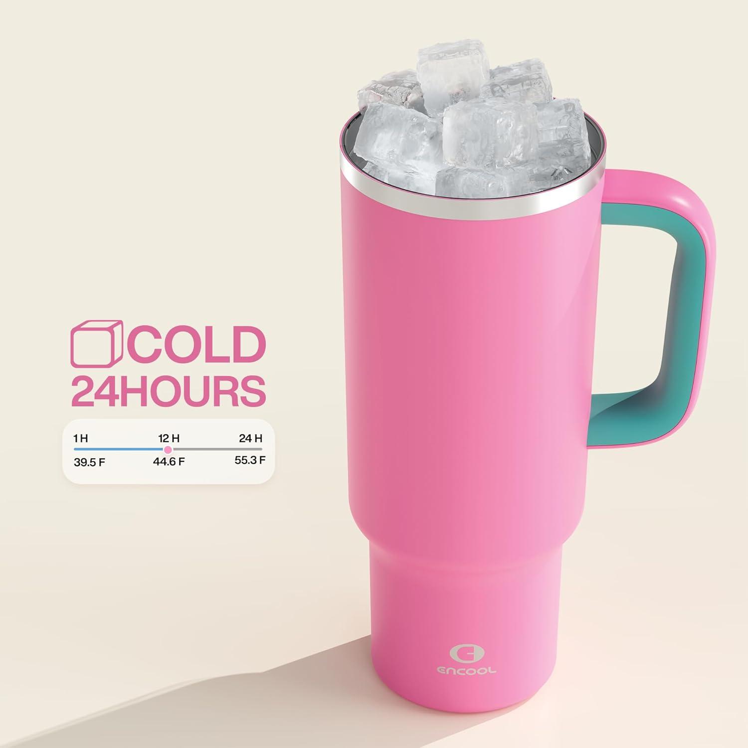 Be the first to review “40 oz Tumbler with Handle and Straw: Stainless Steel Insulated Tumbler Keeps Cold for 24 Hours, Leakproof Travel Cup Fits in Cup Holder and BPA-Free, Evening Glow(Light Crimson)”