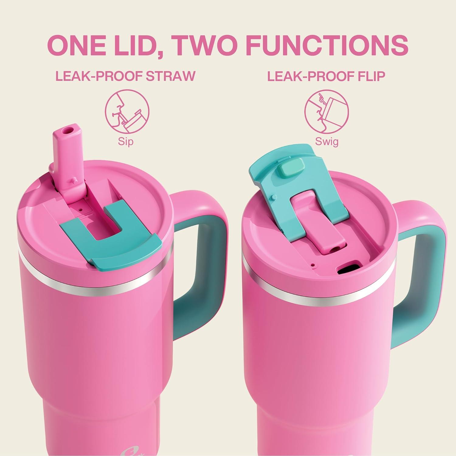 Leakproof Convenience: The secure, flip-top lid ensures a spill-free experience. Flip it open for easy sipping on the go, and snap it shut to keep your drink safely contained—perfect for your active lifestyle.