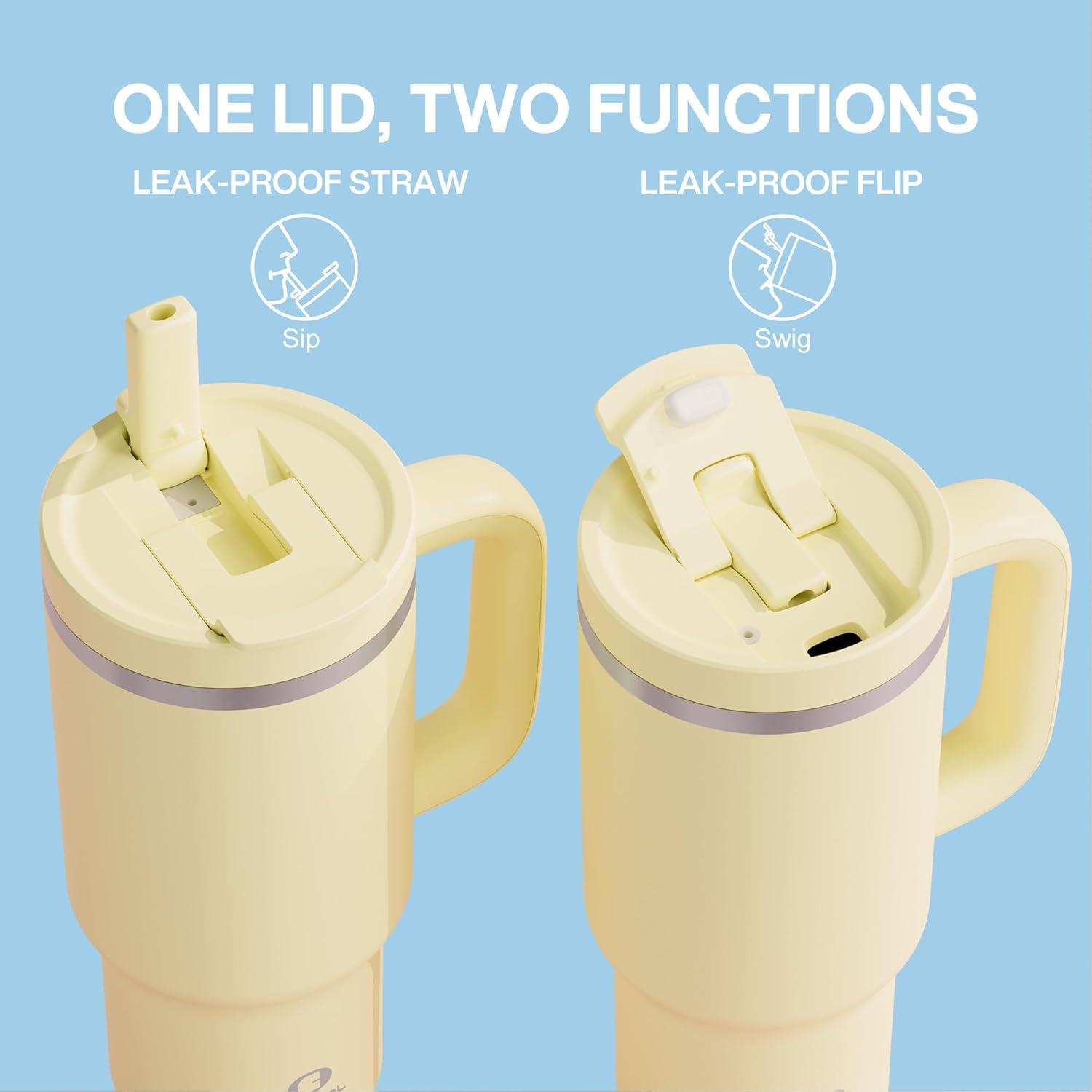 40 oz Tumbler with Handle and Straw: Stainless Steel Insulated Tumbler Keeps Cold for 24 Hours, Leakproof Travel Cup Fits in Cup Holder and BPA-Free, Evening Glow(Light Vanilla)