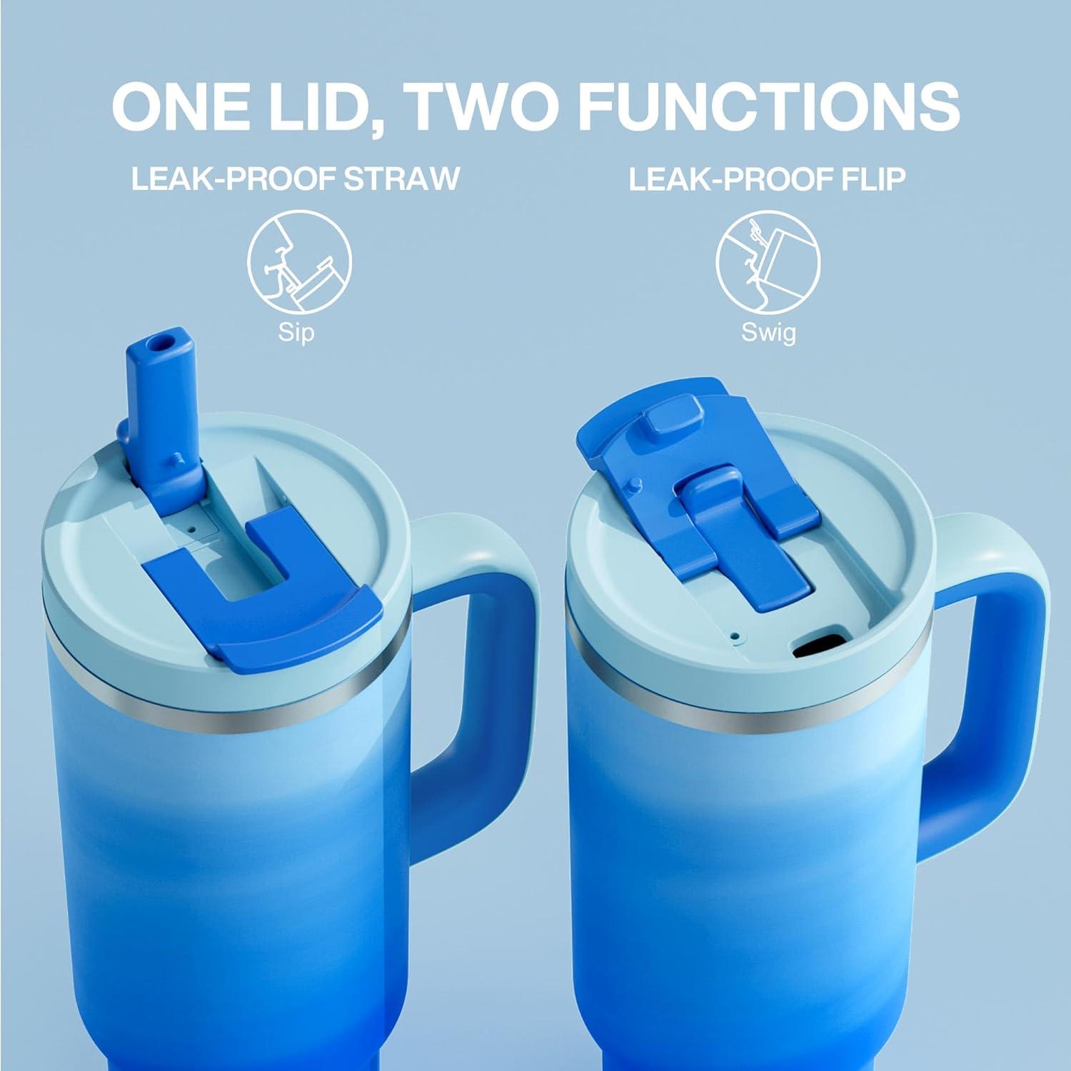 40 oz Tumbler with Handle and Straw: Stainless Steel Insulated Tumbler Keeps Cold for 24 Hours, Leakproof Travel Cup Fits in Cup Holder and BPA-Free, Evening Glow(Royal Blue)