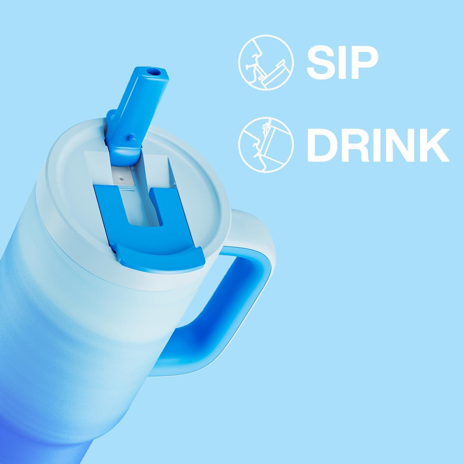 40 oz Tumbler with Handle and Straw: Stainless Steel Insulated Tumbler Keeps Cold for 24 Hours, Leakproof Travel Cup Fits in Cup Holder and BPA-Free, Evening Glow(Sea)