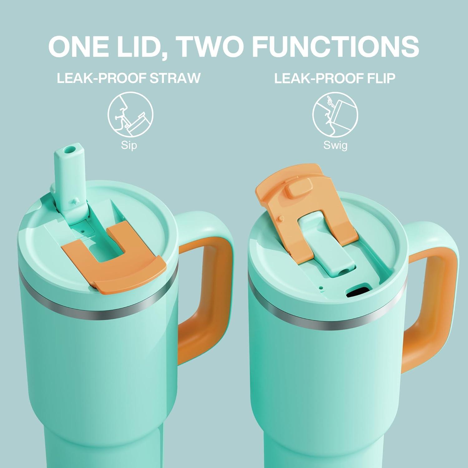40 oz Tumbler with Handle and Straw: Stainless Steel Insulated Tumbler Keeps Cold for 24 Hours, Leakproof Travel Cup Fits in Cup Holder and BPA-Free, Evening Glow(Soft Lagoon)