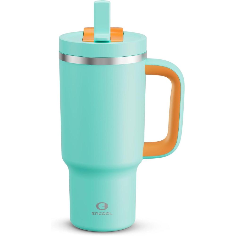 Be the first to review “40 oz Tumbler with Handle and Straw: Stainless Steel Insulated Tumbler Keeps Cold for 24 Hours, Leakproof Travel Cup Fits in Cup Holder and BPA-Free, Evening Glow(Soft Cyan)”