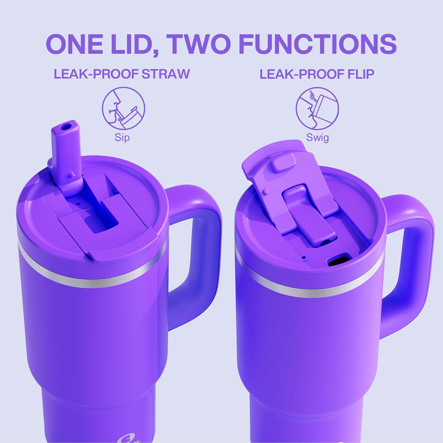 Be the first to review “40 oz Tumbler with Handle and Straw: Stainless Steel Insulated Tumbler Keeps Cold for 24 Hours, Leakproof Travel Cup Fits in Cup Holder and BPA-Free, Evening Glow(Violet)”